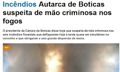 Suspeita pois. Porque a alternativa à mão criminosa é o sol bater numa lupa e começar a arder o que quer que esteja por baixo. O que não faltam por aí são lupas no chão. Ou malta que deixa cair fósforos que depois com o vento se deslocam e arrastam numa superfície queimando a seguir tudo à volta. Quem nunca viu um coelho a deitar uma beata para cima de caruma que arrisque ter a certeza sobre a mão criminosa nos fogos.