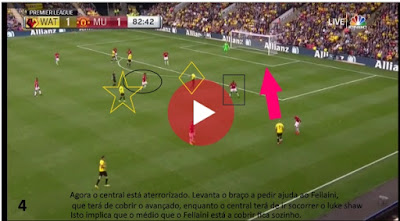 De notar que o gajo a quem eu chamo "central", na realidade é o Pogba. O facto de ele ter de estar ali, naquela posição, explica muita coisa. Todos os 4 jogadores da linha mais defensiva estão mal posicionados (os outros 3 que não o Luke Shaw estão demasiado deslocados para a sua direita). Os jogadores são fracos. Será que o Mourinho ainda tem o tempo, a paciência e o engenho para os educar/treinar?